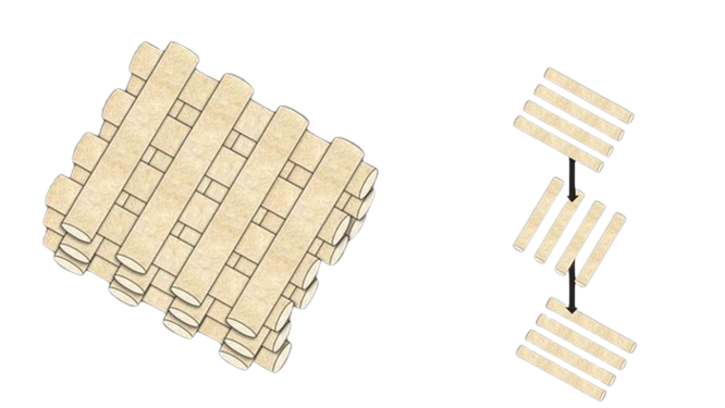 Po inokuliavimo padėkite rąstus pavėsyje, apsaugotus nuo saulės ir vėjo ant žemės. Rekomenduojame rąstelius sustatyti į šulinį (žr. paveikslėlį žemiau) (Pastaba: rekomenduojame uždengti rąstus pralaidžiu audiniu, pušies šakomis arba tinklu, jei jūsų vietovėje aktyviai veisiasi kėkštai, nes yra žinoma, kad jie iš rąstelių ištraukia grybieną). Drėgmės palaikymas šiame etape yra svarbiausias žingsnis siekiant sėkmingai auginti šitakius. Jei orai nelepina, gali tekti apipurkšti rąstus vandeniu. Rąstai pradės auginti grybus, kai kolonizacija bus beveik baigta ir bus idealios sąlygos grybams augti (6-12 mėn).